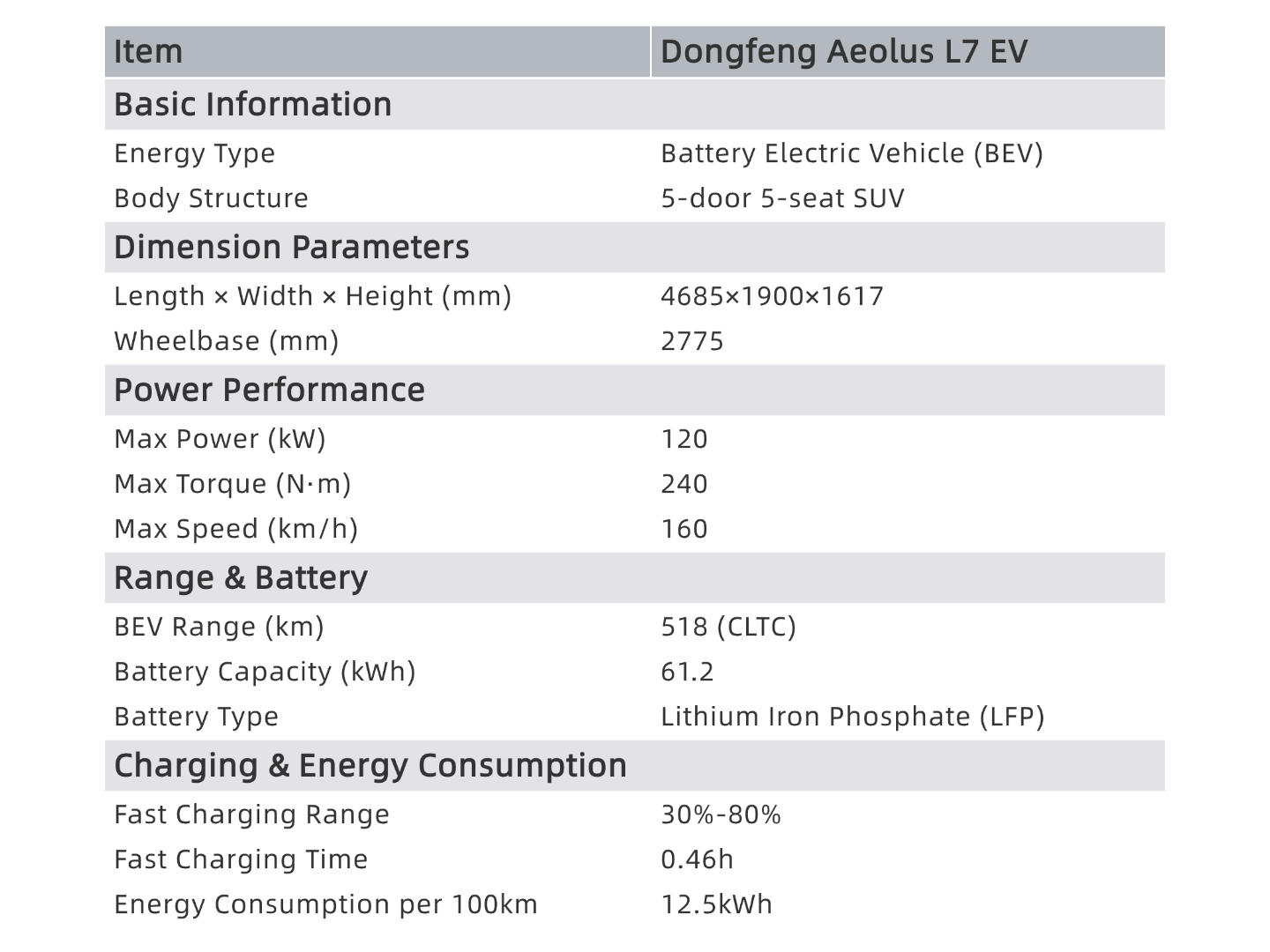 The side of the body features hidden door handles, and a sunroof is optional. It also comes with 18-inch rims. In terms of body dimensions, the new Dongfeng Aeolus L7 pure electric version measures 4685x1900x1617 millimeters in length, width, and height, with a wheelbase of 2775 millimeters. It is equipped with a 160 kW single motor produced by Zhixin Technology Co., Ltd., and is equipped with a Zhongchuang Xinhang lithium iron phosphate battery pack.